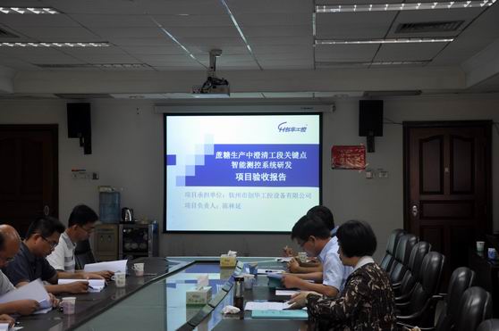 我公司承擔(dān)的廣西工業(yè)創(chuàng)新發(fā)展項(xiàng)目—《蔗糖生產(chǎn)中澄清工段關(guān)鍵點(diǎn)智能測(cè)控系統(tǒng)研發(fā)》于2015年5月13日在欽州進(jìn)行驗(yàn)收,廣西壯族自治區(qū)工業(yè)和信息化委員會(huì)組織的專家組聽取了項(xiàng)目承擔(dān)單位情況介紹,審查了相關(guān)材料,經(jīng)過質(zhì)詢和討論,專家一致同意項(xiàng)目通過驗(yàn)收。